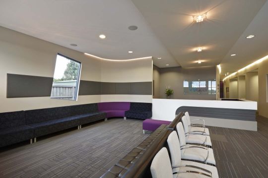 The surgeries are oriented to maximise the natural light, providing an impressive outlook and spacious feel with a view into an enclosed landscaped courtyard providing interest and visual relief for patients and staff. The overall design and high quality building finish promote confidence in the dental practice as a progressive and aware professional service provider.